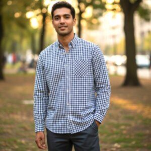 Urban Pipeline shirt, men’s small button up, blue white check shirt, plaid casual shirt, long sleeve pocket shirt, men’s everyday wear, classic checkered shirt