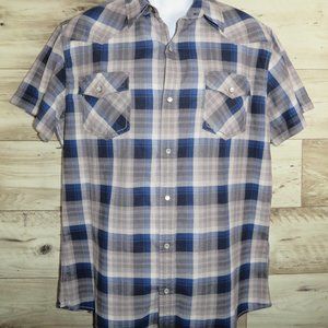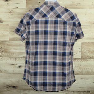 Urban Pipeline* Men's Short Sleeve Snap Button Down Curved Hem Plaid Shirt~Large