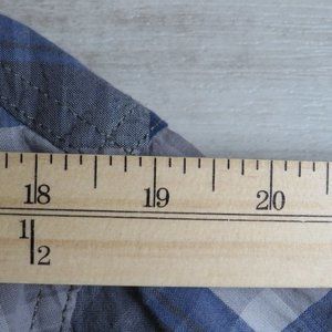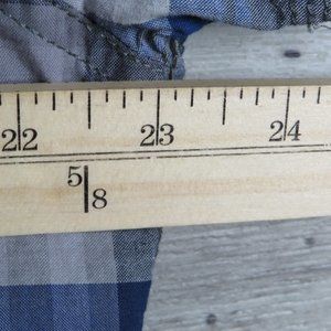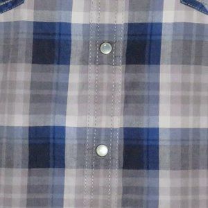 Pre-Owned Condition! 100% Cotton. Handsome Blue, White & Gray Plaid Print Design, Mother of Pearl Snap Buttons Double Chest Pocket Plaid Shirt.