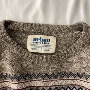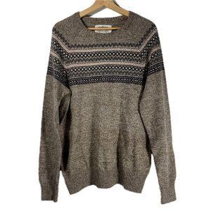 Urban Pipeline Men's Wool Blend Geometric Nordic Knit Sweater Brown Size L