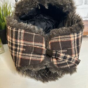 Urban Pipeline Plaid Wool Trapper Hat, Faux Fur