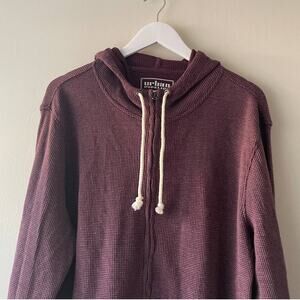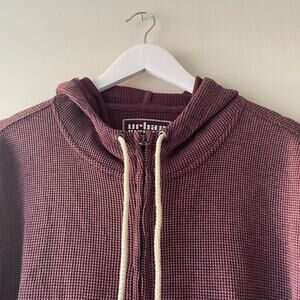 Urban Pipeline Plum/ Burgundy Heather Waffle Knit Long Sleeve Hoodie with Drawstring - Size L