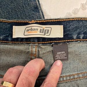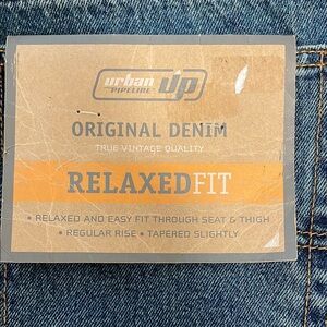 Urban Pipeline relaxed fit jeans. Classic blue denim. Comfortable and stylish. These are a relaxed fit. They are relaxed and easy fit through seat and thigh. Regular rise taper slightly. These are very tall with 34 inch inseam.