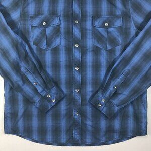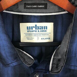 Urban Pipeline Shirt Men's 2XL Blue Black Plaid Button Down Long Sleeve Pockets
