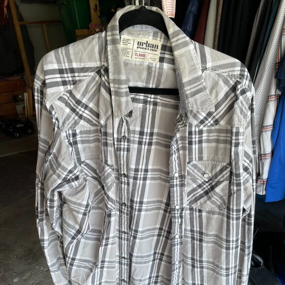 Urban Pipeline Shirt XL Plaid Long Sleeve Western Pearl Snap Flannel Pocket