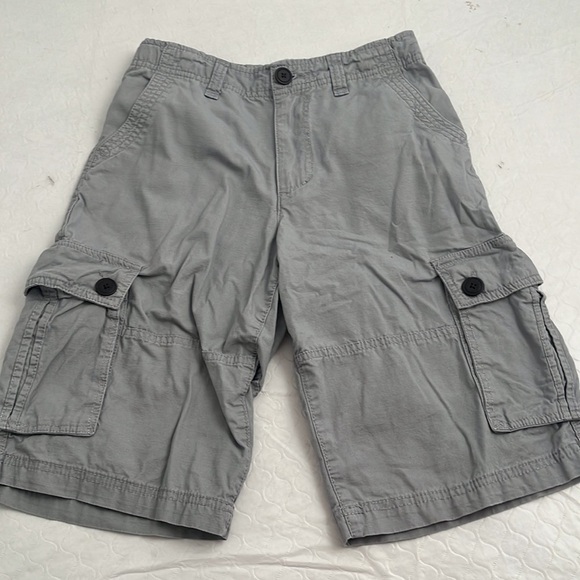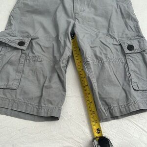 Urban Pipeline gray adjustable waist cargo shorts. Six pockets - slip and velcro flap. Smoke free home