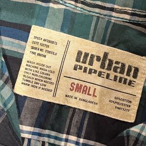 Urban Pipeline Boys Plaid Checked Button-Up Long Sleeve Shirt Blue Black Small