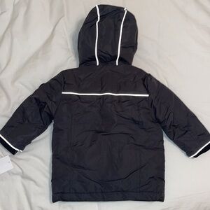 NWT URBAN REPUBLIC ballistic hooded jacket that’s sure to keep him warm and cozy. Features faux fur lined hood, covered zipper with snap overlap, quilted lining, 4 pockets, reflective piping, rib knit cuffs, and wind & water resistant outer shell to protect from the elements. 100% polyester outer shell, lining, and fill. Machine washable. Piping is a light gray but reflected when picture was taken to appear white.