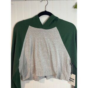 Urban Rebel Green & Gray Hooded Raglan Long Sleeve Cropped Sweatshirt Top Size M