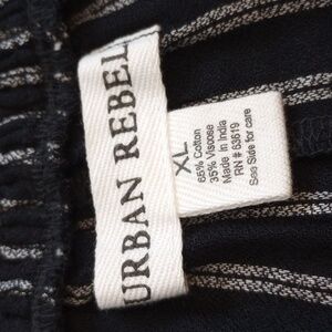These are new XL Urban Rebel wide leg pants in a black and white stripe. They are very lightweight and a cotton blend. The waistband is stretchy. They have pockets.