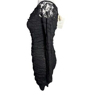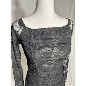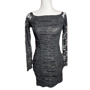 Urban Renewal Black Lace Dress Form Fitting Bodycon Long Lace sleeve Ruching NWT
