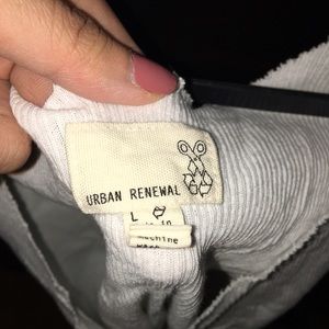2 Urban Renewal V Hemmed Crop Tops. Sold at Urban Outfitters. Size large, but fits S/M depending on frame and bust. It's a bit wrinkled because it's be sitting in my dresser for a year.