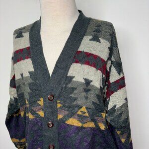 Urban Renewal Knit Cardigan Sweater Aztec Southwester Size L/XL Wool Blend Italy