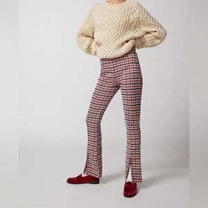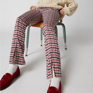 Urban Renewal Remnants Plaid Front Slit Flare Pant Red S NWT IN PACKAGE