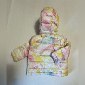 Keep the baby warm this season with this puffer jacket that is finished with a tie-dye pattern.