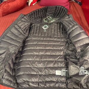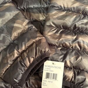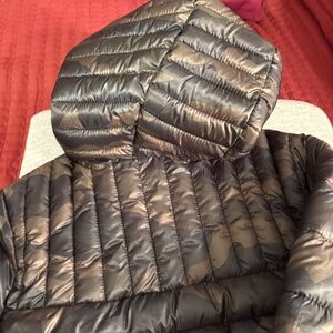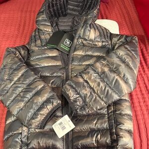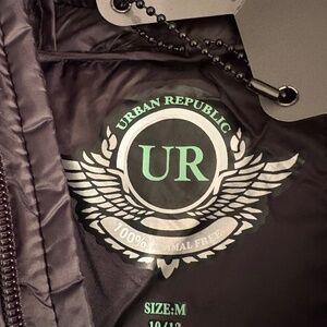 This is a urban republican puffer jacket and it a camouflage green color. The jacket is brand new never worn tags are attached. The jacket is a size 10/12 youth, it zips up the front for closure and it has a hood.