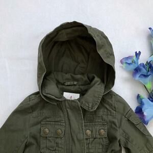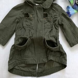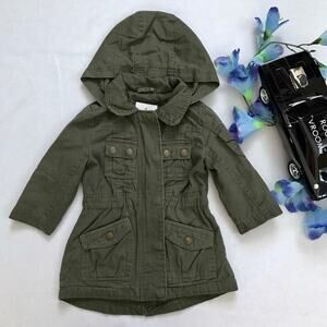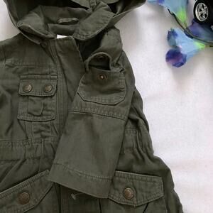 NWT. Anorak Jacket for Girls Size 18M. Olive, Zipper and snap buttons for closure, 4 front pockets, long sleeves, pocket left sleeve, removable hood, internal adjustable elastic waist. Pictures are part of description.