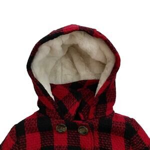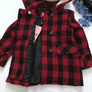 NWT. Gingham Pea Coat for Girls Size M (5/6). Button for closure, soft faux fur lined non removable hood, collar, 2 front pockets, fully internal lining, 2 front pockets. Pictures are part of description.