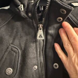 Urban Republic Toddler boys heavyweight wool military style winter coat jacket size 3T. NWOT. Black long sleeves, lined, two front cargo pockets, two slanted non functional pockets, removable hood with zipper & zippered front with snap closures. 90% poly 10% wool P2P 13 length 18 sleeve length 13 SFPF HOME