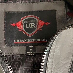 Urban Republic Toddler black Vegan Leather Moto jacket hooded 2T bad boy biker