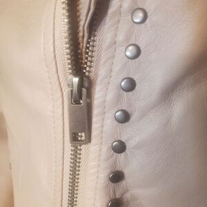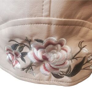 Urban Retro Light Pink Faux Leather Jacket with Embroidered Flowers Size L