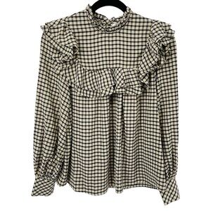 Urban Revivo Check Print Frill Detail Blouse - Sz 2