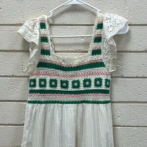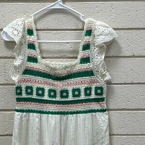 Urban Revivo White Boho Crochet Dress size 4. Approx. measurements 14” chest flat across, 40” length.