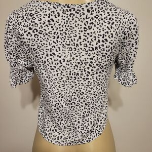 Urban Romantic White Cheatta Print Crop Top Medium V Neck Spring