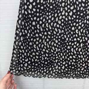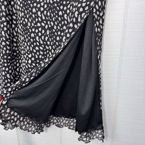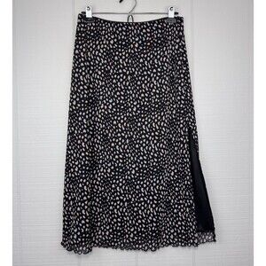 Urban Romantics Black Spotted Animal Print Midi Skirt Side Slit Lettuce Trim Hem