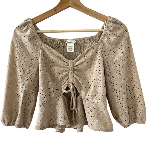 Urban Romantics Eyelet Cropped Top - Small - Cottagecore Y2K Milkmaid Coquette