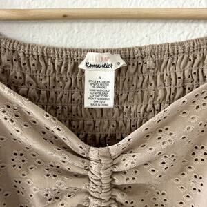This Urban Romantics eyelet top is perfect for adding a touch of cottagecore and romantic flair to your wardrobe! It features delicate eyelet detailing and a flattering silhouette. Excellent used condition. Grab it now to complete your look!