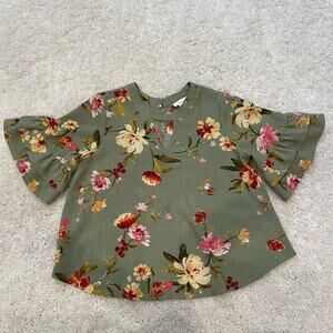 Urban Romantics Floral Boho Top Size M Ruffle Bell Sleeve
