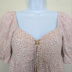 Urban Romantics Light Pink Babydoll Blouse Leopard Print Puff Sleeve Top Size XS