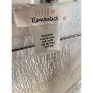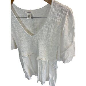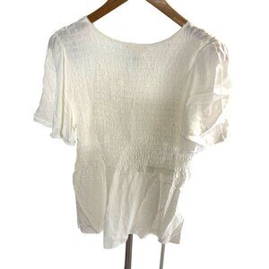 Urban Romantics White Smocked V Neck Flutter Sleeve Peplum Top Sz L Coastal