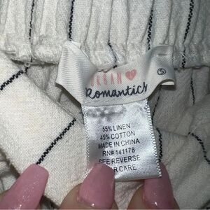 Urban Romantics White Striped Paperbag Waist Linen Wide Leg Cropped Trouser Pant