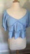 Urban Romantics blue crop top with tie in the back & ruffle trim on the front and end of sleeves