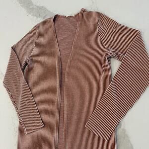 Urban Rose Long Duster Striped Lightweight Cardigan Sweater Womens Small Rust