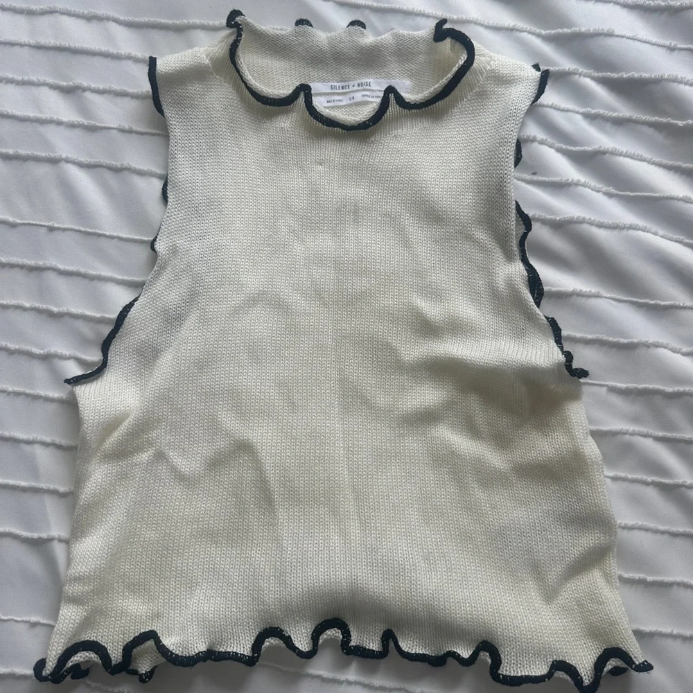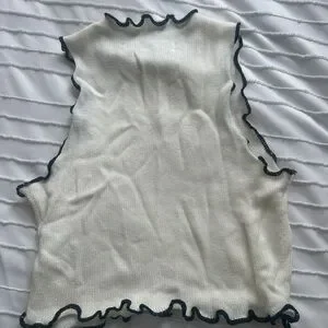 White sheer top with black trim. Never been worn bc it just doesnt look right on me. Size L so that it’s full length (I am 5’4, 110lbs) would be a good cover up or w/ a bralette