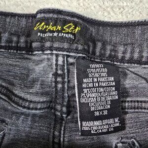 Urban Star Jeans Mens 38x32 Black Gray Stretch Straight Leg Faded Distressed