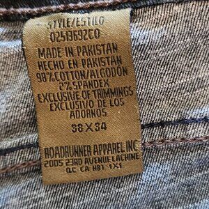 Urban Star Men’s Jeans in a dark wash denim with subtle fading for a broken-in, rugged look. Classic five-pocket design with zip fly and button closure. Crafted from a comfortable stretch fabric blend that provides ease of movement and all-day comfort. Made in Pakistan. Says Size 38 by 34 But Inseam 32.5