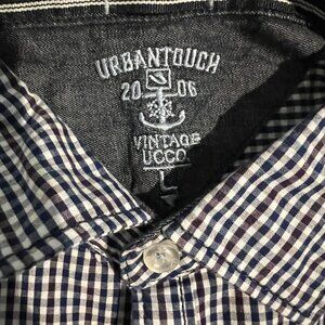 Urban Touch Plum, Blue & White Gingham Check Long Sleeve Button-Down Shirt SZ L