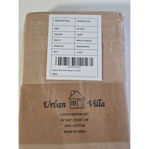 Urban Villa 4 pack Dinner Napkin Taupe NWT