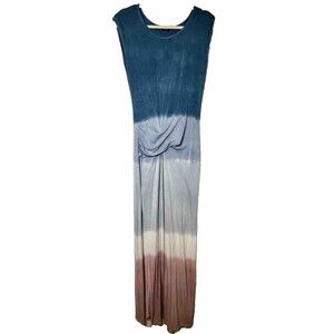 Urban X Umbre Maxi Dress With Ruched Waist, Tie Dye Detail, Bottom Slit in Size Small
