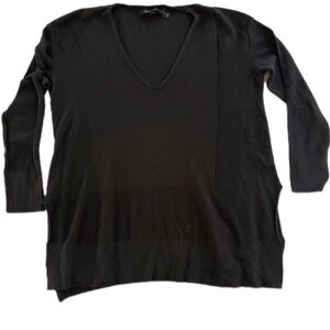Soft and lightweight comfort with class. Dark Navy blue, size Petite Small. Slim, 3/4 sleeve and split hem at the sides. Drop shoulder.