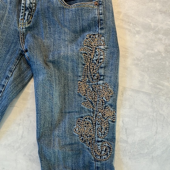 Urban behavior jeans denim medium blue Decorative left leg stitching size 3 jr