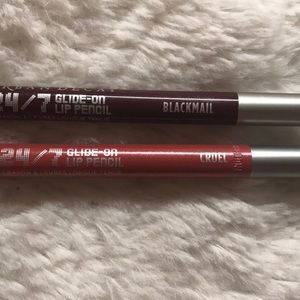 Urban decay lip liners in shades "blackmail" and "cruel" blackmail has been worn about 3 times and cruel has only been swatched. Will sanitize.