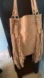 Stylish and versatile tan leather tote bag with fringe detailing. Perfect for adding a touch of boho chic to any outfit.
