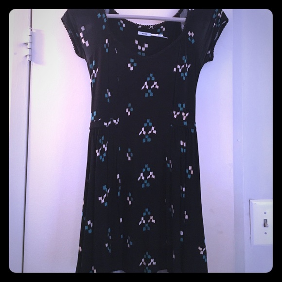 Urban outfitters dress- cotton - never worn - black with green and white pattern - size S - short sleeve