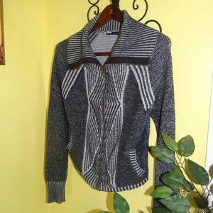 This item is used but in good condition. BDG gray knitted jacket in woman's size small. It has two front pockets and front zipper closure.