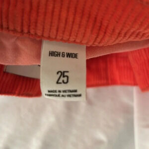 These are urban outfitters BDG red corduroy flare pants. They are size 25. High and wide. 28 inch inseam. Hundred percent cotton. Machine wash cold.